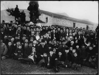 | Keywords: Gorentsi-wedding-Papazoglou-2.jpg Сватбата на Ха алампос Х истидис и а ика Возе в село Го енци Косту ско в дво а на цъ квата Света Бого одица Gathering of villagers in Gorentsi today Korisos Greece in the yard of the church of the Holy Mother on the occasion of the wedding of Charalampos Christideis and Marika Voze Λεωνίδας Πα άζογλου Φωτογραφικά ορτραίτα α ό την Καστοριά και την εριοχή της την ερίοδο του ακεδονικού Αγώνα ουσείο Φωτογραφίας Θεσσαλονίκης 2004 Leonidas Papazoglou 1872 - 1918 PD-art Pictures by Leonidas Papazoglou Korisos Wedding portrait photographs Wedding ceremonies in Greece Christian weddings Group portraits with many people |