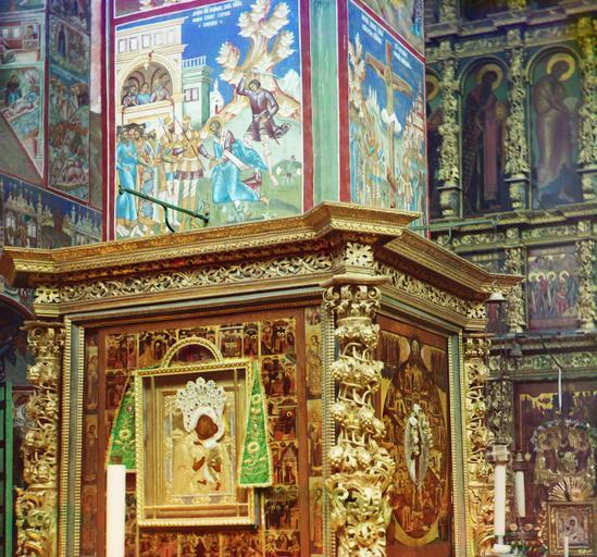 | Keywords: Gorskii 03986u.jpg Wallpainting of a pillar in the Church of St John Chrysostom In the bottom tier in the forefront - the icon The Mother of God of the Tolga with the marginal scenes The centerpiece has not survived The frame is in the collection of Yaroslavl Art Museum-Preserve Yaroslavl 1911 Роспись столпа в це кви Иоанна Златоуста В нижнем я усе на пе еднем плане - икона Богомате ь Толгская с клеймами С едник не сох анился Рама находится в соб ании Я ославского госуда ственного музея-заповедника Я ославль 1911 г Sergei Mikhailovich Prokudin-Gorskii Collection Library of Congress LOC-image ppmsc 03986 1911 Creator Sergey Prokudin-Gorsky digital rendering for the Library of Congress by Walter Frankhauser / WalterStudio There are no known restrictions on the use of this image PD-Russia PD-1923 Photo of Ensemble of churches in Korovniki by Sergey Prokudin-Gorsky Frescos in Yaroslavl Icons in Yaroslavl Museum-Preserve Mary2 Riza of Marian icons in Russia Tolgskaya of Yaroslavl |