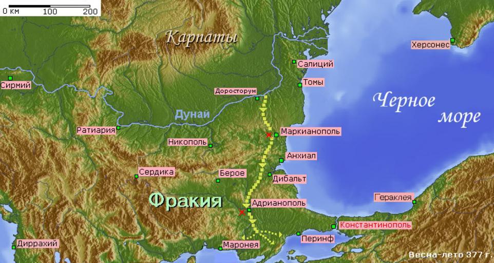 Keywords: Goth-war-377-map-01ru.jpg Map of Gothic war 376 “382 1-st stage Based on Commons map AntikeGriechen1 jpg File AntikeGriechen1 jpg 2009 Vissarion Gothic War 376 “382 Maps of Devnya History of Devnya History of Edirne