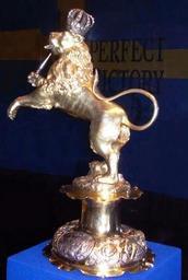 Keywords: Gothland lion-shaped vessel.jpg Artwork en Gothland lion-shaped vessel from King John Casimir's set pl Naczynie w kształcie Gotlandzkiego Lwa z zastawy króla Jana Kazimierza Silver gilt cm 59 Moscow Kremlin Armoury en Part of the set accompanied by other heraldic figures Polish Eagle in the Wawel Castle collection and hypothetically Lithuanian Pahonia in the Kremlin collection Removable lid shaped as a crown Object history ca 1665 commission John II Casimir of Poland Warsaw own BurgererSF ca 1666 Heinrich Mannlich Other versions West-european tableware in the Museums of Moscow Kremlin Silverware in Russia Tableware from the Polish Vasa Collection Silver sculptures |