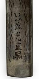Keywords: Got么 Sokuj么 - Kozuka with the D么j么ji Temple Bell - Walters 51805 - Mark A.jpg This design is a scene from the story of D鬸鬸i temple The temple bell is shown at the center of the composition At the right are two monks holding prayer beads and praying A woman dances at the left holding a mallet for striking the bell The monks at D鬸鬸i used the bell to hide a traveling monk who was trying to escape a woman who was pursuing him She thought he had promised to marry her and in her anger at his rejection of her transformed herself into a dragon She coiled herself around the bell and killed the hidden monk by breathing fire on the bell In the noh and kabuki plays about the story a dancer who is the spirit of the jealous woman comes to the temple to celebrate the installation of a new bell She dances under the bell and when it falls on her she is transformed into a dragon The dancer is shown here as a fox Foxes were commonly thought to take the form of a beautiful woman in order to cause mischief between 1600 1631 early Edo shibuichi gold cm 9 8 l accession number 51 805 10696 Henry Walters Baltimore date and mode of acquisition unknown Walters Art Museum Henry Walters Acquired by Henry Walters signature place of origin Kyoto Japan Walters Art Museum license Kozuka in the Walters Art Museum Got么 Sokuj么 Media contributed by the Walters Art Museum needs category review |