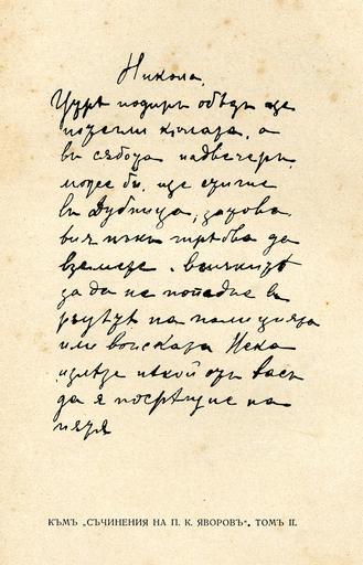 | Keywords: Gotse Delchev letter to Nikola Maleshevski 1899-06-10 page 1.jpg Факсимиле на писмо от Гоце Делчев до икола алешевски Ст аница 1 http //www promacedonia org/gd2/gd_3 html 132 Текст Facsimile of a letter from Gotse Delchev to Nikola Maleshevski Page 1 П К Яво овъ Хайдушки копнения Спомени отъ акедония Гоце Дѣлчевъ Биог афия изд Хемусъ 1899-06-10 Гоце Делчев 1872 - 1903 PD-old File Gotse Delchev letter to Nikola Maleshevski 1899-06-10 pdf PD-old Gotse Delchev | ||||