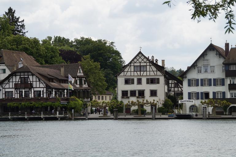 Keywords: gottlieben lake constance switzerland bank water waters homes waterfront near shore on the water at the lake village promenade
