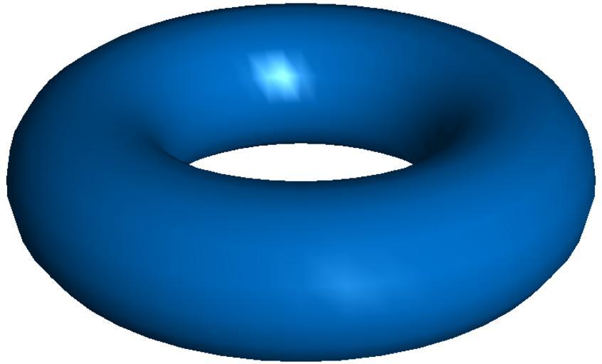 Keywords: Gouraudshading00.png Gouraud shading with Phong illumination model 1 of 4 showing specular artifacts highlights Rendered with OpenGL 2008-02-25 Maarten Everts All rights released public domain Torus Gouraud shading Phong illumination model