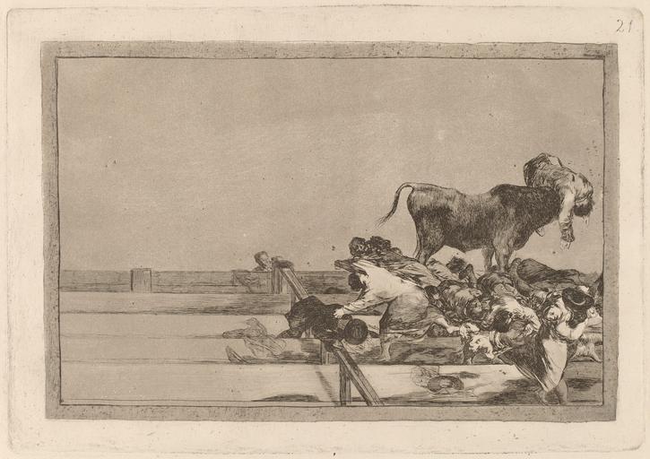 | Keywords: Goya - Desgracias acaecidas en el tendido de la plaza de Madrid, y muerte del alcalde de Tor rejon.jpg Artwork Creator Francisco de Goya y Lucientes in or before 1816 etching burnished aquatint lavis drypoint and burin first edition impression Institution National Gallery of Art accession number 1943 3 1640 object history credit line 1943 3 1640 Assessments 1 Unfortunate events in the front seats of the ring of Madrid and the death of the Mayor of Torrejón PD-old-100 Uploads by User Boo-Boo Baroo Prints by Francisco de Goya in the National Gallery of Art La Tauromaquia Tauromaquia |