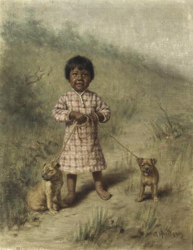 | Keywords: Grace Carpenter Hudson - Greenie with two yellow puppies, 1896.jpg  Artwork Creator Grace Hudson 1896 oil on canvas in 10 25 8 accession number object history PROVENANCE Private collection Washington credit line 'G Hudson' ~ lower right signature signed numbered and inscribed 'Grace Hudson / Ukiah CA '73' on the reverse http //www bonhams com/auctions/20071/lot/54/ Bonhams PD-old-auto-1923 1937 Paintings by Grace Hudson by number 073 Paintings of Native Americans by Grace Hudson 073 Images from Bonhams Paintings of children with animals |