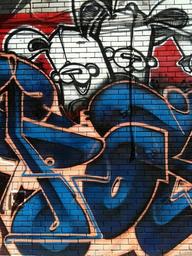 Keywords: graffiti art wall painting urban spray creative artistic blue brick wall
