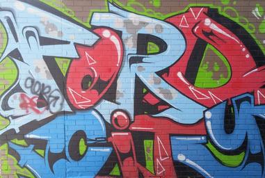 Keywords: graffiti ford city red blue urban design symbol exterior downtown colorful
