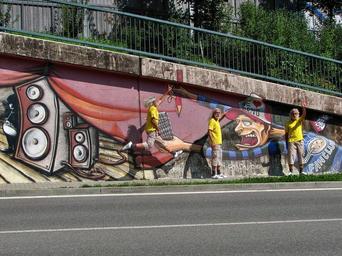 Keywords: graffiti graffiti wall brno czech paint spray street street art artistic self portrait man greetings montage satire gag