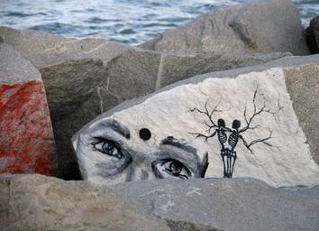 Keywords: graffiti rocks breakwater background drawing mediterranean sea grey