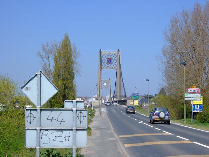 | Keywords: GraffitiAncenis.jpg Un graffiti réclamant le rattachement de la Loire-Atlantique à la région Bretagne à l'entrée d'Ancenis own Touriste 47 359303 -1 175159 region FR_heading NNW Political graffiti Road signs in Loire-Atlantique Liré Ancenis Pont suspendu d'Ancenis |