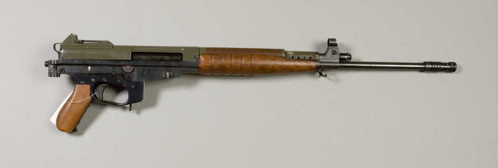 Keywords: GRAM 63 battle rifle 1.jpg sv GRAM 63 kal 6 5mm 1962 401 En svensk automatkarbin som togs fram som prototyp i kalibrarna 6 5 och 7 5 mm av Carl Gustafs Stads Gevärsfaktori i samband med att Automatgevär m/42 skulle ersättas i svenska armén en GRAM 63 kal 6 5mm 1962 401 A prototype battle rifle that was in trials to replace the Ljungman Ag m/42 semi-automatic rifle in Swedish Army service and was manufactured by the Carl Gustav corporation Unknown Armémuseum AM 006918 through www digitaltmuseum se Armémuseum cc-zero Attribution metadata from licensed image Uploaded with UploadWizard GRAM battle rifle Firearms in the Swedish Army Museum Images from Swedish Army Museum |