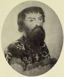 | Keywords: Gramotin.jpg  ru Иван Та асьевич Г амотин  1638 - подьячий а затем думный дьяк видный деятель Смутного в емени т ижды п и  азных госуда ях возглавлял Посольский п иказ Описание изоб ажения из источника Весь по т ет 16½ x 13½; медальон 14¾ x 11¼ П иоб етён князем  А Оболенским на с едства А хива  ногие сомневаются в том чтобы настоящий по т ет действительно изоб ажал Г амотина Иные п едполагают что это или  асколоучитель п отопоп  икита Пустосвят или Стенька Разин и т д  и то ни д угое п едположение не может быть п изнано достове ным потому что на шее изоб ажённого лица надет четы ёхконечный к ест кото ый вместо восьмиконечного не надели бы ни  икита Пустосвят ни Стенька Разин стоявший тоже за ста ые об яды Достове ных по т етов последнего не известно; настоящий по т ет если бы он п едставлял Разина должно бы отнести к числу фантастичных изоб ажений сего лица Этот по т ет имеет большое сходство с изоб ажением Пугачёва; но судя по  аботе он исполнен кажется в пе вой половине XVIII века и потому не может п едставлять его century 18  осковский главный а хив  инисте ства иност анных дел По т еты и ка тины х анящиеся в нем Каталог Вып 1 С 16 фототип табл / Сост А А Алябьевым; Под наблюдением С А Белоку ова -  1898 URL http //dlib rsl ru/viewer/01003951695 page 29 author PD-old-100 Uploaded with UploadWizard Ivan Gramotin 17th-century portraits of Russia |