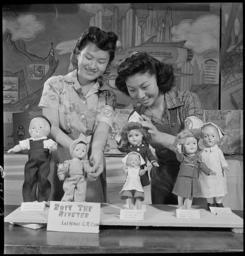 | Keywords: Granada Relocation Center, Amache, Colorado. Girls' Reserves Victory Dolls. Jane Nagai, left, and . . . - NARA - 539300.tif Scope and content The full caption for this photograph reads Granada Relocation Center Amache Colorado Girls' Reserves Victory Dolls Jane Nagai left and Boots Sotomura right Each doll was dressed by a Girl Reserve froup in the Granada Center They represent various womens' war-work activities and were on display at the Arts and Crafts Festival March 6th to 8th General notes 539300 Local identifier 210-G-E769 Department of the Interior War Relocation Authority 02/16/1944 - 06/30/1946 Still Picture Records Section Special Media Archives Services Division NWCS-S National Archives at College Park 8601 Adelphi Road College Park MD 20740-6001 1943-03-06 Record group Record Group 210 Records of the War Relocation Authority 1941 - 1989 Record group ARC 537 Central Photographic File of the War Relocation Authority compiled 1942 - 1945 Series ARC 536000 File unit File unit ARC Variant control numbers NAIL Control Number NWDNS-210-G-E769 yes Other versions <gallery> File Granada_Relocation_Center _Amache _Colorado _Girls'_Reserves_Victory_Dolls _Jane_Nagai _left _and_ _ _ _-_NARA_-_539300 tif tif File Granada_Relocation_Center _Amache _Colorado _Girls'_Reserves_Victory_Dolls _Jane_Nagai _left _and_ _ _ _-_NARA_-_539300 jpg jpg </gallery> NARA-cooperation PD-USGov Dolls NARA TIF images with categorized JPGs |