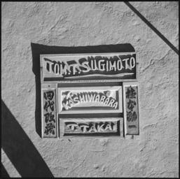 | Keywords: Granada Relocation Center, Amache, Colorado. Name plate in English letters and Japanese characters . . . - NARA - 539921.tif Scope and content The full caption for this photograph reads Granada Relocation Center Amache Colorado Name plate in English letters and Japanese characters carved from scrap lumber General notes 539921 Local identifier 210-G-K400 Department of the Interior War Relocation Authority 02/16/1944 - 06/30/1946 NARA-Author Iwasaki Hikaru 1923- Photographer 8464103 <br /> Still Picture Records Section Special Media Archives Services Division NWCS-S National Archives at College Park 8601 Adelphi Road College Park MD 20740-6001 10/1945 Record group Record Group 210 Records of the War Relocation Authority 1941 - 1989 Record group ARC 537 Central Photographic File of the War Relocation Authority compiled 1942 - 1945 Series ARC 536000 File unit File unit ARC Variant control numbers NAIL Control Number NWDNS-210-G-K400 yes Other versions <gallery> File Granada_Relocation_Center _Amache _Colorado _Name_plate_in_English_letters_and_Japanese_characters_ _ _ _-_NARA_-_539921 tif tif File Granada_Relocation_Center _Amache _Colorado _Name_plate_in_English_letters_and_Japanese_characters_ _ _ _-_NARA_-_539921 jpg jpg </gallery> NARA-cooperation PD-USGov Granada War Relocation Center NARA TIF images with categorized JPGs Wood carved inscriptions |