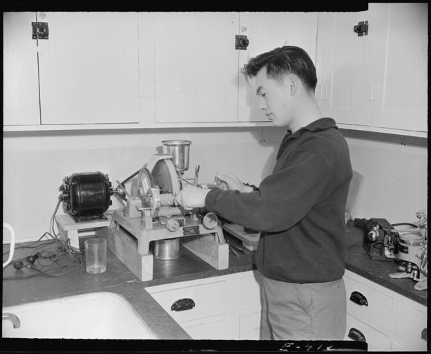 Keywords: Granada Relocation Center, Amache, Colorado. A young worker of Japanese ancestry grinding eye glass . . . - NARA - 538997.jpg Scope and content The full caption for this photograph reads Granada Relocation Center Amache Colorado A young worker of Japanese ancestry grinding eye glasses in the optometry clinic at the Amache Relocation Center General notes 538997 Local identifier 210-G-E416 Department of the Interior War Relocation Authority 02/16/1944 - 06/30/1946 NARA-Author Parker Tom Photographer 4682167 <br /> Still Picture Records Section Special Media Archives Services Division NWCS-S National Archives at College Park 8601 Adelphi Road College Park MD 20740-6001 1942-12-09 Record group Record Group 210 Records of the War Relocation Authority 1941 - 1989 Record group ARC 537 Central Photographic File of the War Relocation Authority compiled 1942 - 1945 Series ARC 536000 File unit File unit ARC Variant control numbers NAIL Control Number NWDNS-210-G-E416 Other versions <gallery> File Granada_Relocation_Center _Amache _Colorado _A_young_worker_of_Japanese_ancestry_grinding_eye_glass_ _ _ _-_NARA_-_538997 tif tif File Granada_Relocation_Center _Amache _Colorado _A_young_worker_of_Japanese_ancestry_grinding_eye_glass_ _ _ _-_NARA_-_538997 jpg jpg </gallery> NARA-cooperation PD-USGov Granada War Relocation Center |