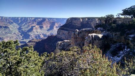 Keywords: grand canyon south rim snow on grand canyon path cloudless sky at grand canyon