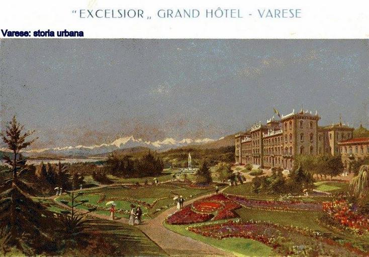 Keywords: Immagine del giardino e del Grand Hotel Excelsior, aperto nel 1874 trasformando profondamente la villa appartenuta alla famiglia Recalcati. varese casbeno grandhotelexcelsior