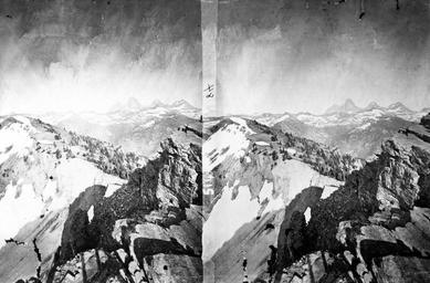 | Keywords: stereoscopic stereophotography stereophotographs historical usgs history geology mapping black and white blackandwhite bnw stereograph blackandwhite monochrome outdoor mountain landscape black and white Grand Teton National Park, Wyoming. Teton Range. 1872.U.S. Geological and Geographical Survey of the Territories (Hayden Survey). Stereoscopic view. Negative damaged. Grand Teton National Park, Wyoming. Teton Range. 1872.U.S. Geological and Geographical Survey of the Territories (Hayden Survey). Stereoscopic view. Negative damaged. |