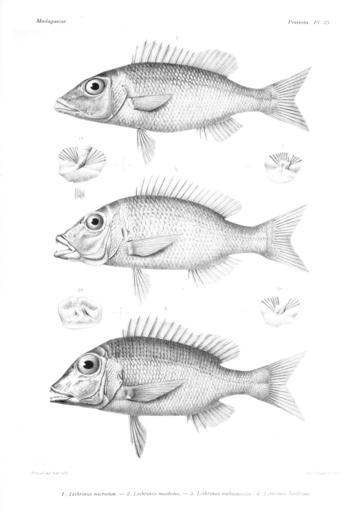 | Keywords: GrandidierMadagascarFishes 0059.jpg Lethrinus microdon Lethrinus mashena Lethrinus mahsenoides Lethrinus latifrons Histoire Physique Naturelle et Politique de Madagascar Volume 16 Histoire Naturelle des Poissons atlas http //www archive org/details/histoirephysique16gran web 1885 text Alfred Grandidier 1836-1921 artists various Arnoul pd-old-70 Alfred Grandidier Histoire Physique Naturelle et Politique de Madagascar - Grandidier - Volume 16 Poissons | ||||