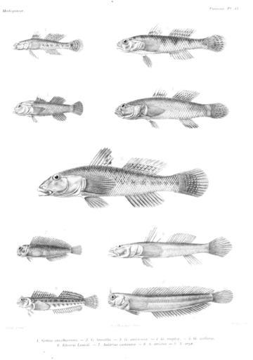 | Keywords: GrandidierMadagascarFishes 0097.jpg Gobius zanzibarensis Gobius brevifilis Gobius amiciensis Gobius simplex Gobius ocellaris Eleotris lantzii Salarias castaneus Salarias striatus Salarias oryx Histoire Physique Naturelle et Politique de Madagascar Volume 16 Histoire Naturelle des Poissons atlas http //www archive org/details/histoirephysique16gran web 1885 text Alfred Grandidier 1836-1921 artists various Jobin pd-old-70 Alfred Grandidier Histoire Physique Naturelle et Politique de Madagascar - Grandidier - Volume 16 Poissons |