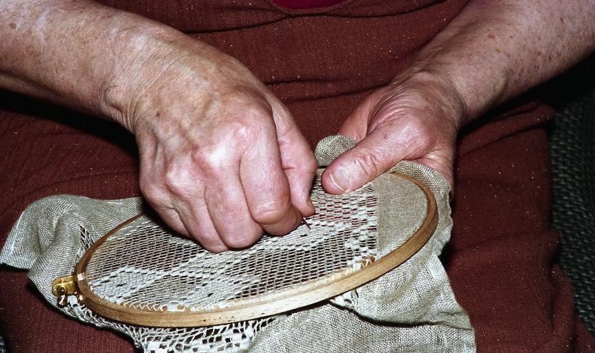 Keywords: grandma woman craft the needle old hole hand finger skill clever the hole the stitch in the tradition of the linen sewing