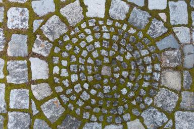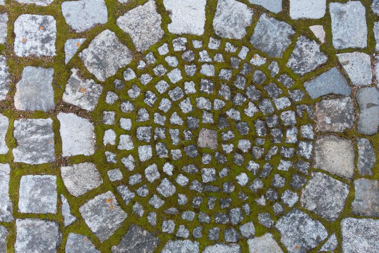 Keywords: granite patch moss bemoost ground cobblestones away texture stone sidewalk paving stone surface green grey natural stone