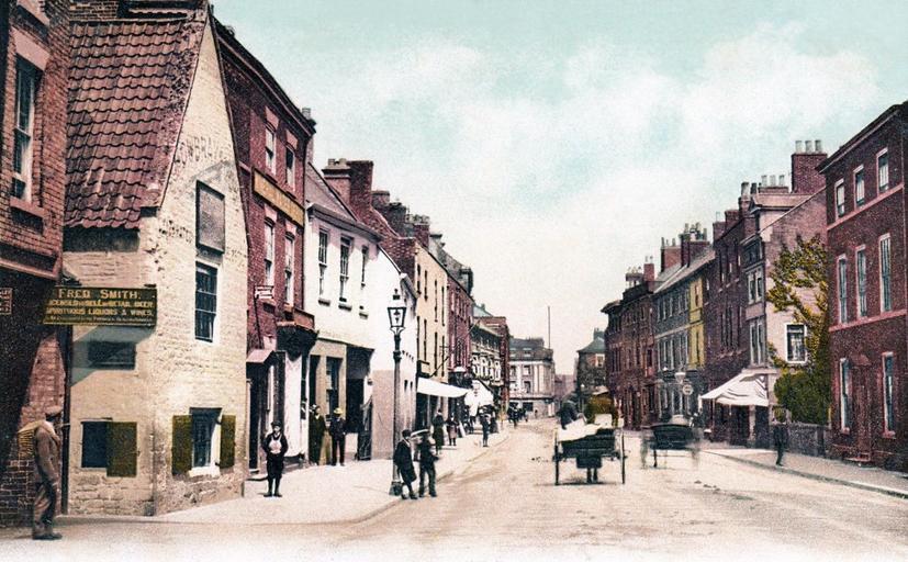 | Keywords: Grantham, Lincolnshire, England - High Street pre First World War.jpg en High Street Grantham Lincolnshire before 1903 per franked stamp looking north The 17th-century stone building with tile-roofed gable end facing the street on the left is the Horse and Jockey public house now demolished Access was at the side along Horse and Jockey Yard where there were cottages also demolished these contemporary to the pub Before the building to the left and all development to the south on St Peter's Hill the public house was the southern 'entrance' to Grantham on the Great North Road and sat square to the northern edge of St Peter's Hill common waste ground The waste ground separated Grantham from the village of Spittlegate to the south which began at the now Wharf Road No indication of publisher on reverse Trimmed to remove damaged edges before 1903 Vintage postcard Unknown photographer other versions 52 910992 -0 641472 PD-old-70-1923 Uploaded with UploadWizard Postcards of Grantham Streets in Grantham Houses in Grantham High streets in the United Kingdom Chaises in the United Kingdom Gas lamps Gas lanterns Postcards of Lincolnshire Gables in Lincolnshire |