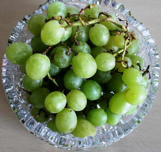Keywords: grapes green white grapes table grapes healthy white sweet delicious fruit bowl glass crystal glass