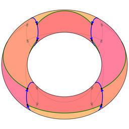 | Keywords: GrapheCayley-C2xC2semiC4-Tore.svg Du source XML Un des 9 groupes non-abéliens d'ordre 16 est le produit semi-direct de C_2 2 par C_4 Il a une présentation <nowiki> < a b a 4 b 2 1 a 2 b b a 2 ab 2 ba 2 > </nowiki> On peut dessiner le graphe de Cayley de cette présentation sur une surface de genre 1 qui sera divisée en 8 régions et coloriée avec 4 couleurs 2007-08-31 own assumed Fool~commonswiki Cayley graphs Torus Color in mathematics | ||||