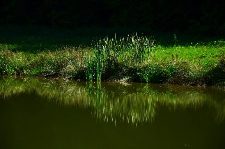 Keywords: grass meadow lake mirroring biotope nature green blade of grass water mood grass green loneliness natural spectacle juicy light lakeside light and shadow