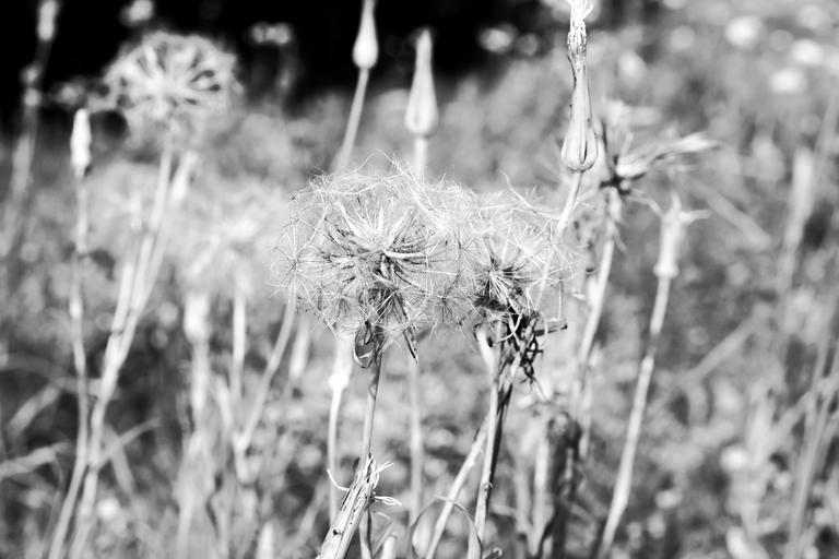 Keywords: grasses dandelion dried black and white field scrub meadow summer nature