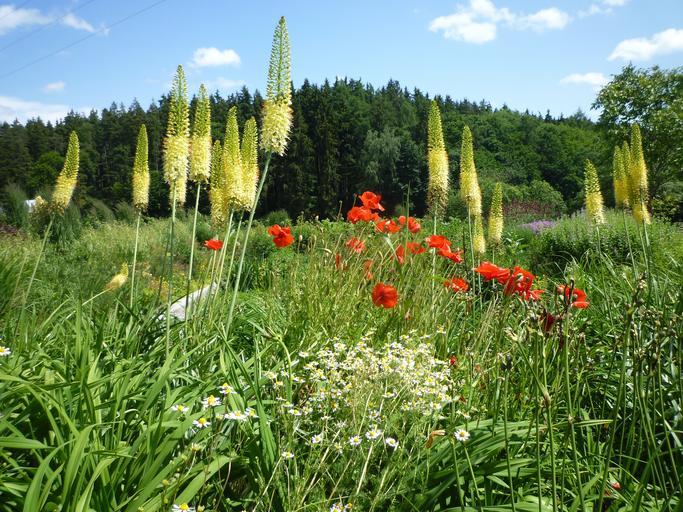 Keywords: grasses poppy flowers plant nature sky rest field summer