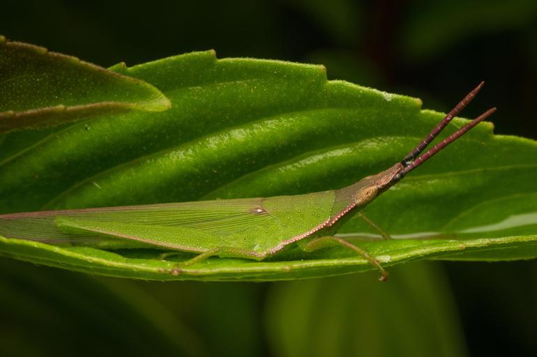 Keywords: grasshopper animal insect wildlife green wild fauna colorful natural nature macro pointed head leaf closeup