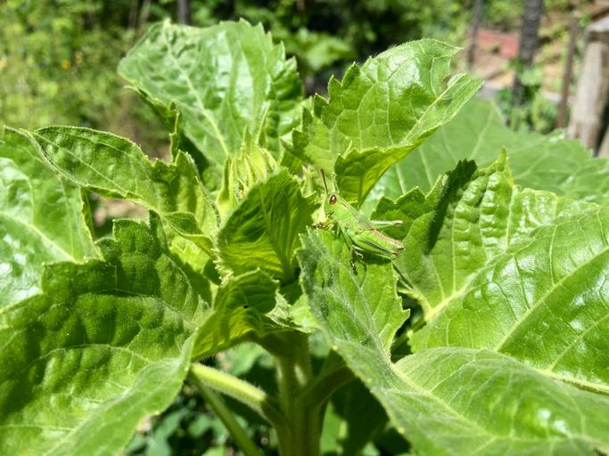 Keywords: grasshopper cricket insect bug green leaves foliage garden macro nature wildlife animal wild locust leaf close invertebrate outdoors natural plant creature summer