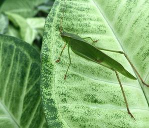 Keywords: grasshopper green insect leaves bug outside nature botanical