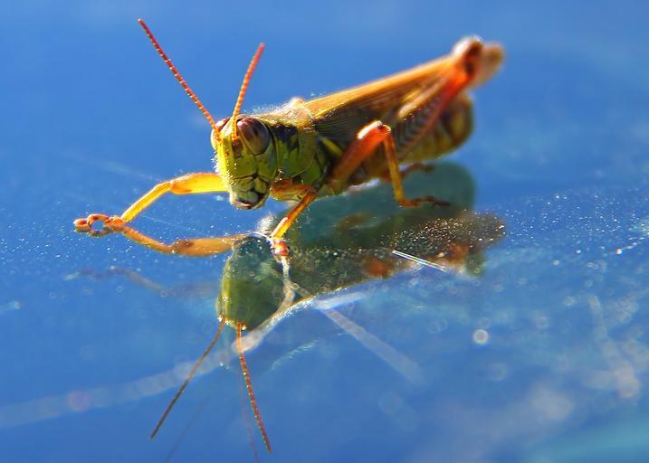 Keywords: grasshopper insect nature macro reflection close close-up outdoors outside outdoor