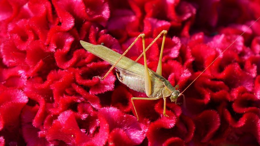 Keywords: grasshopper insects flowers flower flower crest chicken natural flowers nature beautiful bright red colorful wings animals flying bloom assorted macros