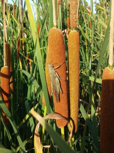 Keywords: grasshopper locust reed green brown bullrushes bullrush cat tail swamp marsh pond natural marshland insects nature wetland aquatic grass grasses plant