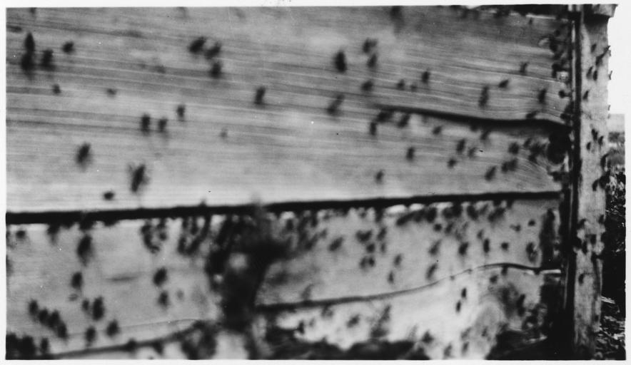 | Keywords: Grasshoppers - NARA - 285279.jpg Scope and content Grasshoppers on a street and on an outside wall General notes 285279 Local identifier Department of the Interior Bureau of Indian Affairs Aberdeen Area Office Cheyenne River Agency 1949 - NARA's Central Plains Region Kansas City NREA 400 West Pershing Road Kansas City MO 64108 1933 Record group Record Group 75 Records of the Bureau of Indian Affairs 1793 - 1999 Record group ARC 404 Cheyenne River Agency Photographs compiled 1900 - 1960 Series ARC 285217 File unit File unit ARC Variant control numbers NAIL Control Number NRE-75-CR PHO -1220 Other versions <gallery> File Grasshoppers_-_NARA_-_285279 tif tif File Grasshoppers_-_NARA_-_285279 jpg jpg </gallery> NARA-cooperation PD-USGov Swarms of locusts Cheyenne River Indian Reservation |