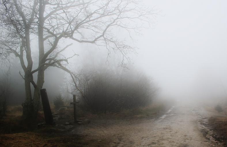Keywords: grave fog autumn mood atmosphere moor nature weather mood tree cross landscape germany away belgium venn weird gloomy hike bush