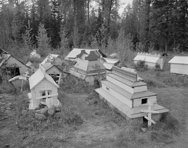 Keywords: Graves at St. Nicholas Russian Orthodox Churches cemetery.jpg en Graves at St Nicholas Russian Orthodox Churches cemetery Eklutna Anchorage AK 1981 http //www loc gov/pictures/item/ak0312 photos 033278p/resource/ Creator Jet Lowe AK 2-EKLU 1--5 HABS AK 2-EKLU 1--5 Uploaded with UploadWizard St Nicholas Russian Orthodox churches Eklutna Alaska |