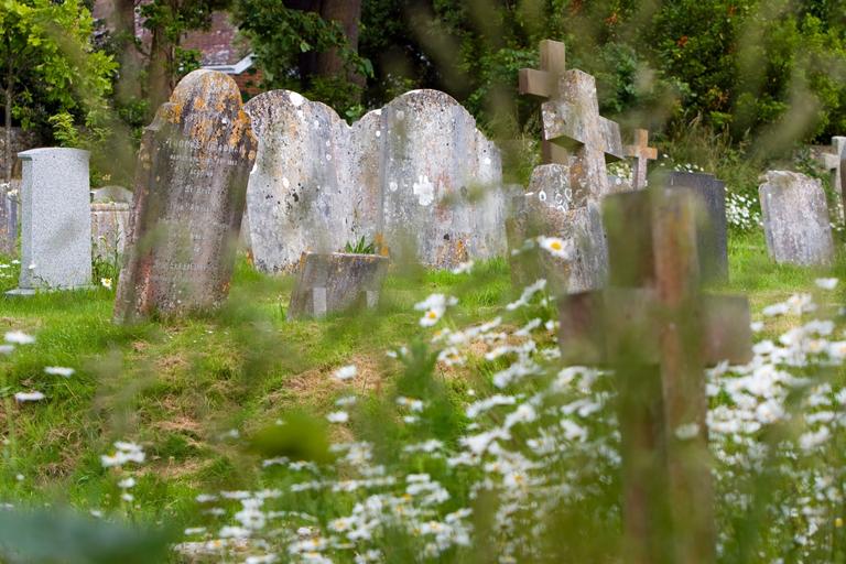 Keywords: graveyard headstone headstones stone flowers daisy daisies summer photo image nature