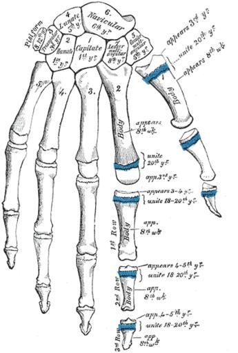 | Keywords: Gray234.png Plan for the development of the hand Other fields 1 Information field Ucfirst Plate 234 before 1858 Henry Gray Anatomy of the Human Body See Book section below 234 Creator Henry Vandyke Carter Book Gray's Anatomy PD-old-100-1923 Gray's Anatomy plates 0234 Bones of the human hand Phalanges of the hand Metacarpus Carpus Trapezium bone Trapezoid bone Proximal phalanges of the hand Intermediate phalanges of the hand Distal phalanges of the hand | ||||
