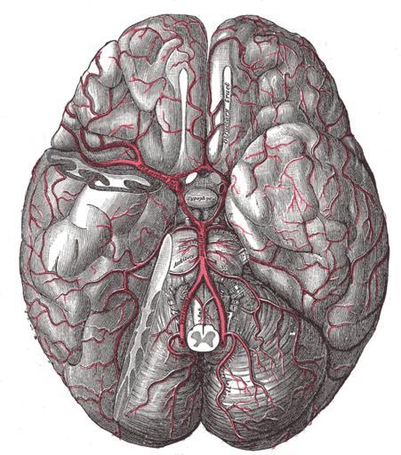 Keywords: Gray516.png en The arteries of the base of the brain The tempora pole of the cerebrum and a portion of the cerebellar hemisphere have been removed on the right side de Circulus arteriosus des Menschen Der Temporallappen und ein Teil der Kleinhirnhemisphäre wurden auf der rechten Seite entfernt <br> 1 Arteria cerebri anterior 2 Arteria cerebri media 3 Zufluss der Arteria carotis interna auf der rechten Seite vom Schläfenlapppen verdeckt 4 Arteria cerebri posterior 5 Arteria basilaris Zufluss fr Polygone de Willis chez l'Homme Other fields 1 Information field Ucfirst Plate 516 before 1858 Henry Gray Anatomy of the Human Body See Book section below 516 Creator Henry Vandyke Carter Book Gray's Anatomy PD-old-100-1923 Gray's Anatomy plates 0516 Neuroanatomy Arteria cerebri anterior Arteria cerebri media Arteria carotis interna Arteria cerebri posterior Arteria basilaris Arteria cerebri communicans posterior Pituitary gland Olfactory tract |