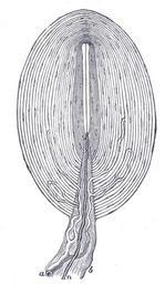 Keywords: Gray935.png Pacinian corpuscle with its system of capsules and central cavity a Arterial twig ending in capillaries which form loops in some of the intercapsular spaces and one penetrates to the central capsule b The fibrous tissue of the stalk n Nerve tube advancing to the central capsule there losing its white matter and stretching along the axis to the opposite end where it ends by a tuberculated enlargement Other fields 1 Information field Ucfirst Plate 935 before 1858 Henry Gray Anatomy of the Human Body See Book section below 935 Creator Henry Vandyke Carter Book Gray's Anatomy PD-old-100-1923 Gray's Anatomy plates 0935 Filippo Pacini Tactile sensation |