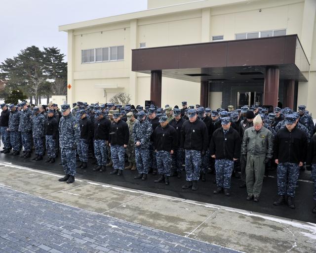 | Keywords: Great East Japan Earthquake Remembrance at NAF Misawa - March 11, 2011 140311-N-ZI955-045.jpg en Naval Air Facility Misawa Commanding Officer Capt Chris Rodeman originally from Anderson Ind leads Navy Misawa personnel in a moment of silence during a remembrance ceremony in honor of the third anniversary of the Great East Japan Earthquake Japan experienced a powerful 9 0-magnitude earthquake March 11 2011 which also triggered a massive tsunami that devastated Japan's eastern seaboard U S Navy photo by Mass Communication Specialist 3rd Class Erin Devenberg/Released <br>Unit Naval Air Facility Misawa 2014-03-11 Senior Chief Petty Officer Daniel Sanford https //www dvidshub net/image/1183378/great-east-japan-earthquake-remembrance-naf-misawa-march-11-2011 140311-N-ZI955-045 2014-03-10 21 53 MISAWA AOMORI JP PD-USGov-Military-Navy Naval Air Facility Misawa Images from DoD uploaded by Fæ |