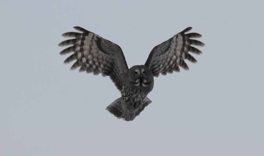 Keywords: great grey owl bird wildlife nature flying wings predator raptor nocturnal outdoors hunter looking