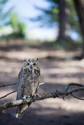 Keywords: great horned owl tree predator wildlife perched raptor nocturnal stare sitting outdoors looking branch nature america usa