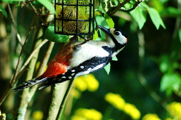 Keywords: great spotted woodpecker woodpecker bird food eat fat balls